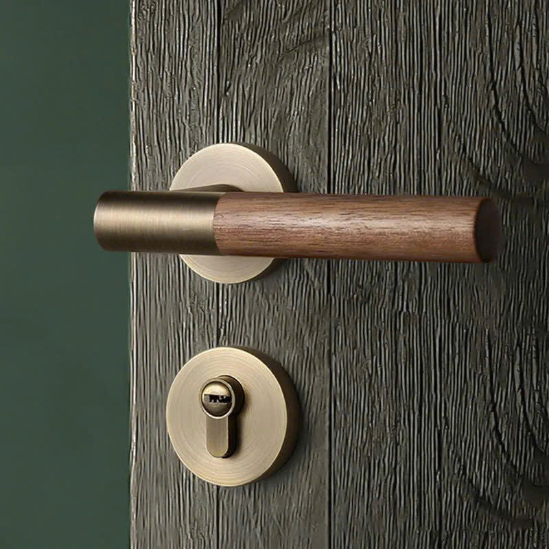 Khóa cửa gạt tay gỗ bọc hợp kim màu vàng