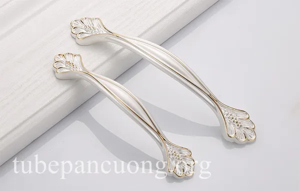 Tay nắm cửa gỗ cổ điển màu trắng viền mạ vàng 6641, mậu tay nắm cửa sang trọng , cao cấp