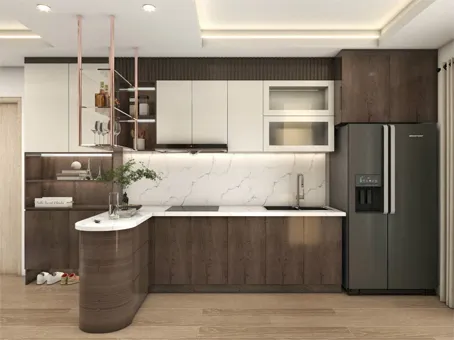 Tủ bếp PM77 sở hữu màu trắng kết hợp vân gỗ tự nhiên, mang đến vẻ đẹp nhẹ nhàng, thanh lịch nhưng vẫn ấm cúng và sang trọng. Thiết kế tối ưu hóa không gian, phù hợp với mọi phong cách nội thất, từ hiện đại đến cổ điển.